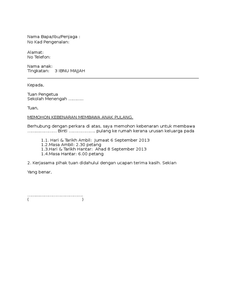 Doc Contoh Surat Kebenaran Bawa Anak Pulang Asrama Octo Forex Academia Edu
