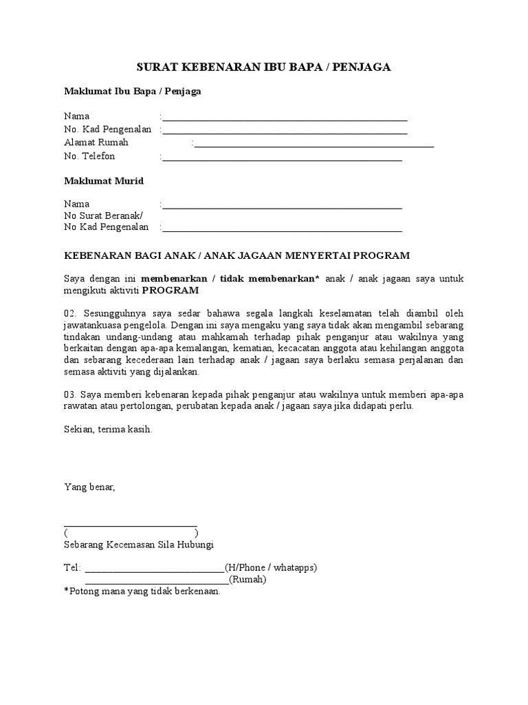 Contoh Surat Kebenaran Ibu Bapa Pdf
