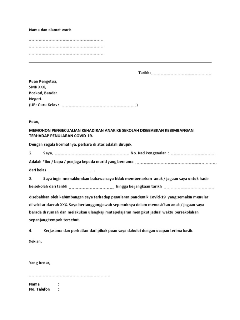 Surat kebenaran ibu bapa 1. Jun 19 2022 baca contoh surat kebenaran bekerja sektor awam dan swasta semasa pkp contoh surat tidak hadir ke sekolah. Sk sultan yussuf 31000 batu gajah perak.